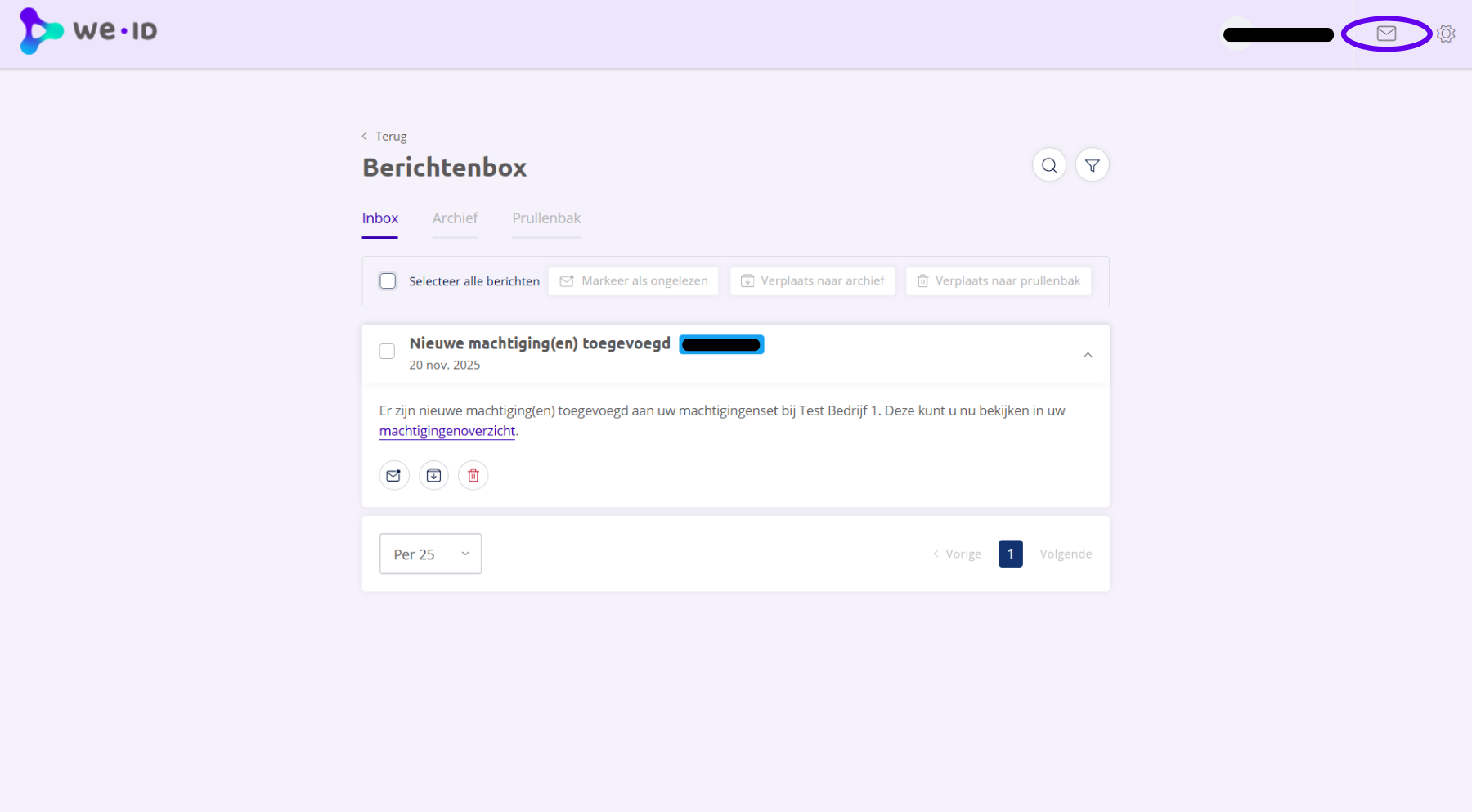 De berichtenbox is ontwikkeld om u op een veilige en vertrouwde manier op de hoogte te brengen o.a. wijzigingen in uw (keten)machtigingen. Zo heeft u voldoende tijd om, indien nodig, actie te ondernemen.